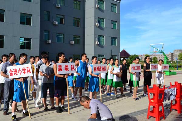 金灘鎮(zhèn)黨委書(shū)記金海華宣布籃球賽開(kāi)幕。峽江水利樞紐樟山防護(hù)工程施工項(xiàng)目部經(jīng)理彭紅軍代表公司致開(kāi)幕詞。他說(shuō):“公司攜手金灘鎮(zhèn)政府舉辦此次籃球賽,旨在增進(jìn)公司與金灘人民之間的團(tuán)結(jié)和友誼,豐富公司員工的文體生活,樹(shù)立江西水建企業(yè)形象。希望參加比賽的各支球隊(duì)和隊(duì)員發(fā)揮‘更快、更高、更強(qiáng)’的奧林匹克精神,堅(jiān)持友誼第一的原則,頑強(qiáng)拼搏,賽出佳績(jī),賽出風(fēng)格。”作為開(kāi)展建黨91周年慶祝活動(dòng)之一,通過(guò)本次比賽,共同祝愿?jìng)ゴ蟮闹袊?guó)共產(chǎn)黨和國(guó)家各項(xiàng)建設(shè)事業(yè)更加繁榮昌盛。
