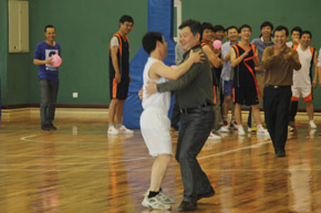 座談會結束后,大家乘車前往恒大體育館,活動的第一項內容是公司領導和青年員工共同完成的團隊拓展游戲——“齊腳并進”和“心心相印”兩項接力比賽。比賽過程中,公司領導和青年員工們熱情高漲,目標明確,心往一處想,勁往一處使,充分發揮團隊協作精神,爭分奪秒完成各項任務,布滿汗水的笑臉在燈光下熠熠生輝,加油鼓勁和歡呼祝賀聲響成一片。拓展游戲項目結束,大家還進行了籃球友誼賽和羽毛球比賽。