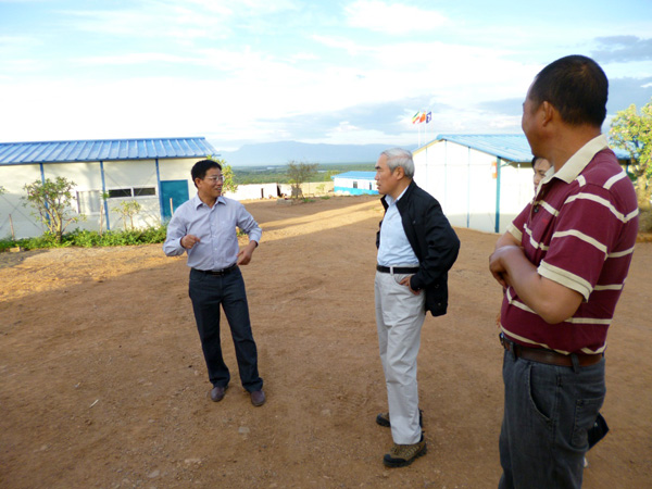 2013年10月5日,中國駐埃塞俄比亞大使解曉巖、經贊處參贊錢兆剛等一行赴我公司埃塞KURAZ灌溉項目視察指導工作。我公司副總經理聶玉和率項目組及駐埃辦事處工作人員熱情接待了解曉巖大使一行,并匯報了我公司在埃塞發展及KURAZ項目建設進展情況。