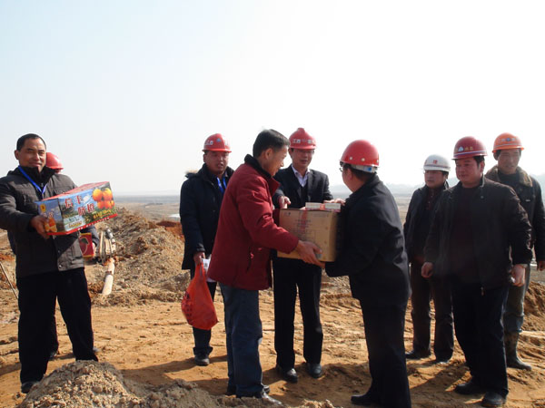 2011年2月3日,年初一上午,省河湖局郭澤杰局長一行到垂直防滲4標親切看望并慰問項目部人員。我司董事長總經理王元旦、上饒市水利水電工程建設監理中心總經理聶道淵等陪同慰問。